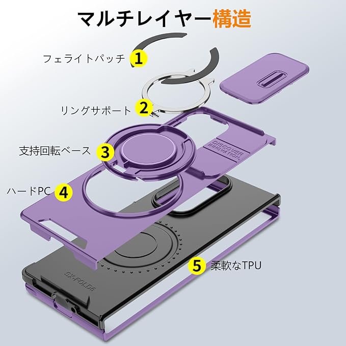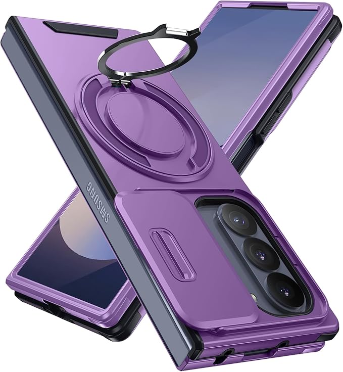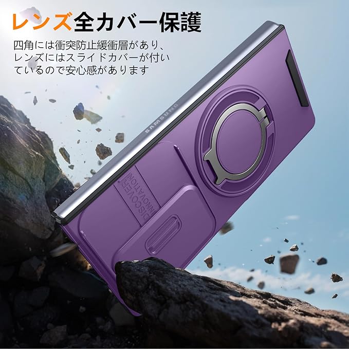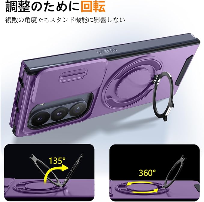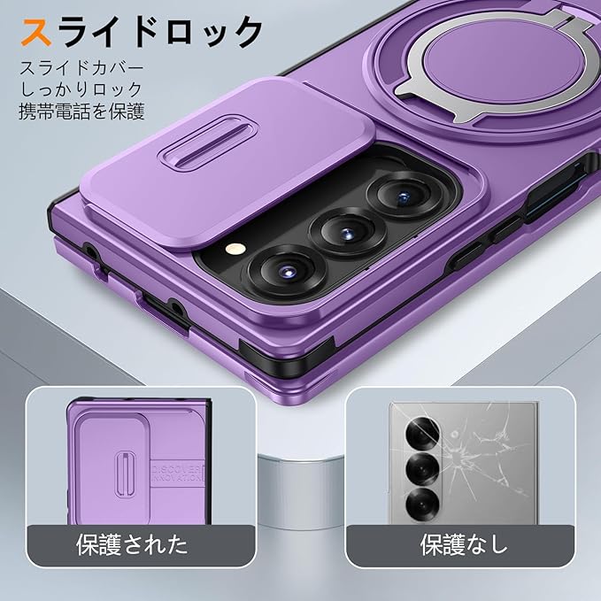 対応 Galaxy Z Fold7 用の ケース リング付き スライド式カメラカバー 隠しスタンド 耐衝撃 スタンド機能 縦横両対応 車載ホルダー PC TPUバンパー 防塵 人気 落下防止 滑り止め 指紋防止 ギャラクシー Z フォールド7 5G カバー 紫 MJJ-1065-07-04-CP | KAZESHOP