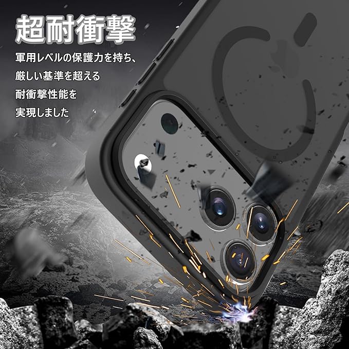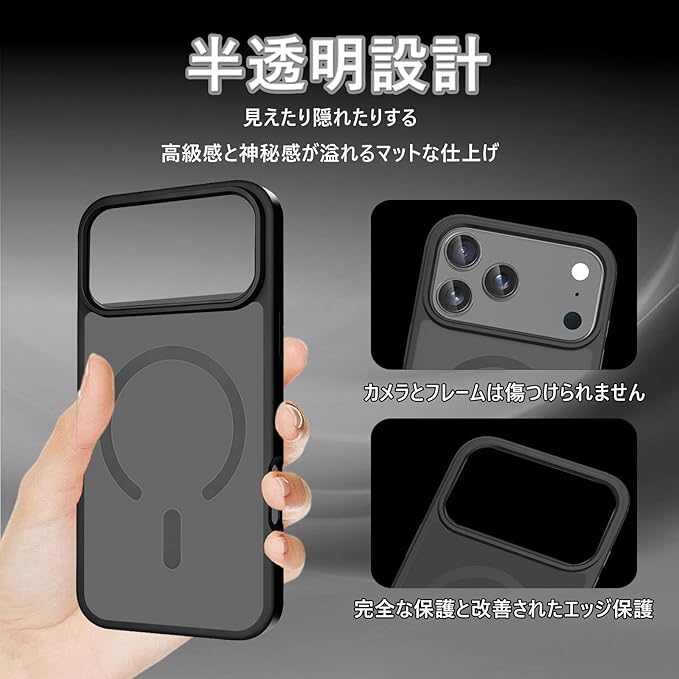 対応 iPhone 17 Pro max 用の ケース ワイヤレス充電 米軍MIL規格 MagSafe対応 耐衝撃 半透明 マット仕上げ 滑り止め 黄ばみ防止 指紋防止 (マットブラック) | KAZESHOP