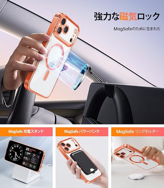 強力なマグネット式アタッチメント:iPhone 17 Pro Max 用マグネット式ケースとリングスタンドは、しっかりと固定しながらも簡単に取り外しできる設計です。MagSafeアクセサリーに対応し、シームレスな充電とスムーズな使用を実現します。(他のMagSafeアクセサリーを使用する場合は、リングホルダーを取り外すだけです)