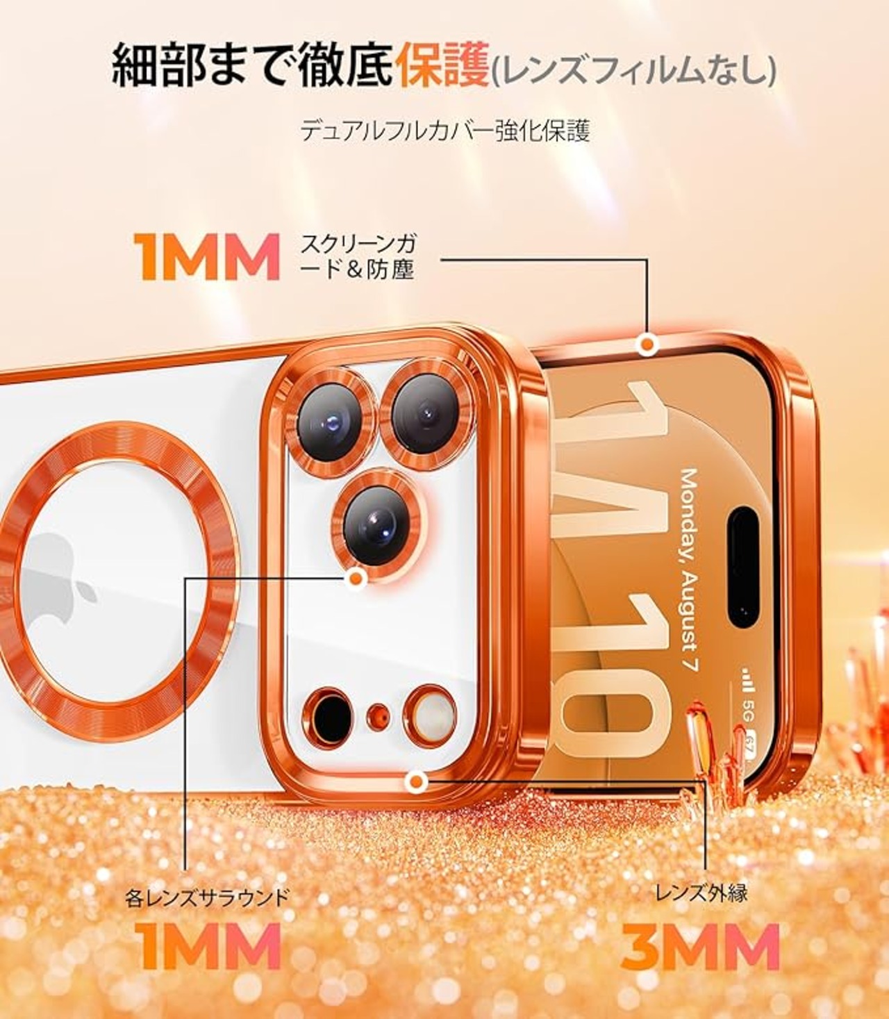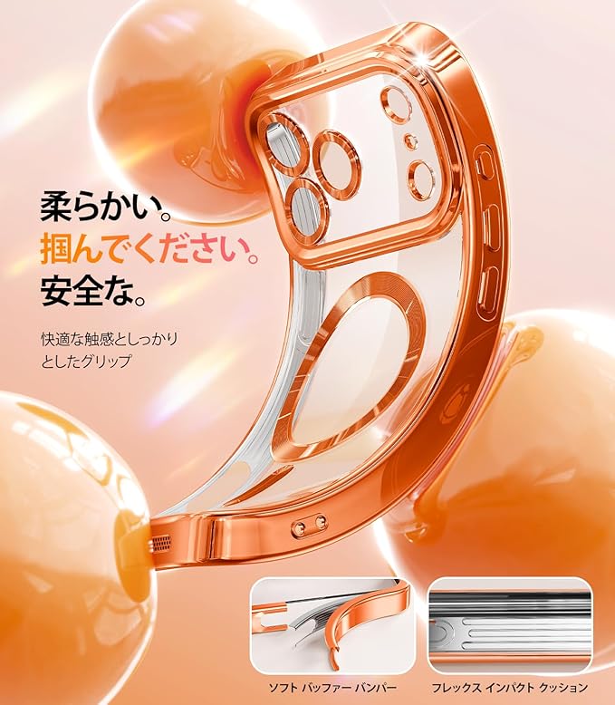 メタリックな光沢とクリスタルクリア:透明な背面はそのままに、エッジ、カメラ、マグネットリングにメタリックな光沢を施し、このiPhone 17 Pro Max 用ケースを真にユニークなものにしています。先進技術を駆使し、iPhoneの美しい透明度を保ちます。ドイツ製光学ガラスを採用。黄ばみを防ぎ、いつでも新品同様の美しい外観をキープできます。