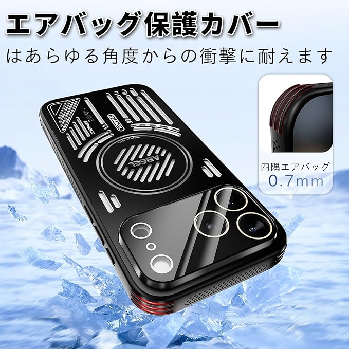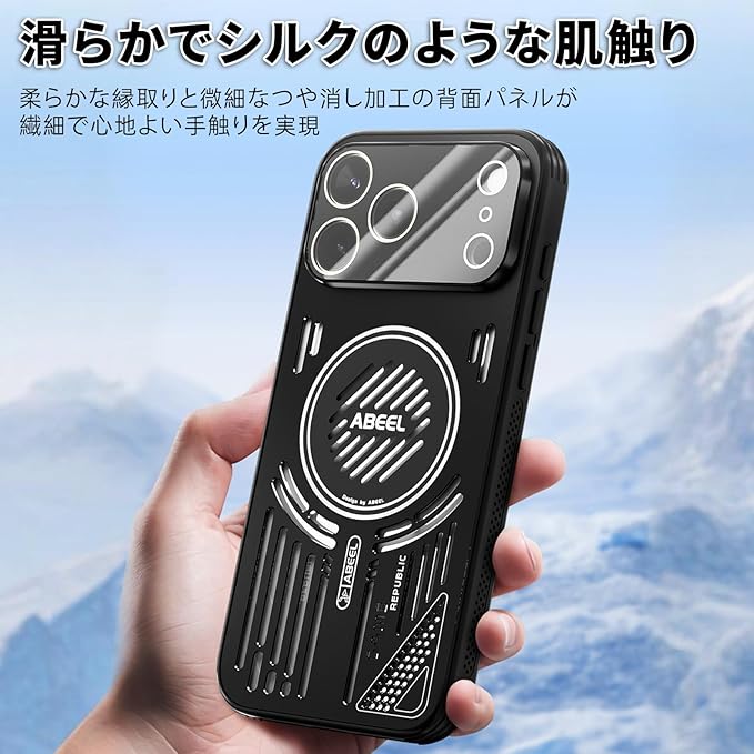 【対応機種】iPhone 17 Pro Max 専用に設計されています。 他のモデルには対応していません、対応機種を十分ご確認ください。製品に不具合が生じた場合は、【出品者に連絡】をクリックして弊社宛まで直接にお問い合わせ下さい。お客様からのお問い合わせ内容に応じて商品交換・返品可能です。【航空用アルミニウム合金製ケ一ス】耐久性のある航空アルミニウム合金製で、一体型の保護ゴムパッドを備え、デバイスを損傷することなく強力な耐衝撃保護を提供します。薄型超軽量仕様ので、手に持っても重さを感じることが無い。ファッション性と実用性をを兼ね備えたデザインです。【放熱冷却機能】ケース 放熱メッシュ構造、長時間の使用で熱くなったアイフォンを効果的に冷却できます。この効果は、メッシュ構造によりエアフローを促進しiPhoneから出る熱の拡散を促進します、放熱を促すことによって得られ、iPhoneの動作パフォーマンスにも良い影響を与えま。ゲーミングスマホの愛好家やブロガーにオススメします ゲーミングスマホケース。【Magsafe対応】マグネットが内蔵されている、MagSafe充電に対応しており、ケースを装着したままでもワイヤレス充電が可能。MagSafeアクセサリーともスムーズに連携でき、日常使いがさらに快適になります。【フルレンズ保護フィルム付き】カメラレンズ一体型保護膜を内蔵。傷つきにくく、汚れに強く、落としても割れにくい安心設計。背面パネルには高強度アルミ合金を採用し、耐久性と高級感を両立。ケースの四隅に衝撃を吸収するエアバッグデザイン、頑丈な構造で、優れる耐衝撃性能。