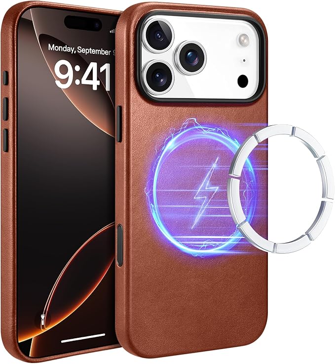 iPhone 17 Pro Max 用 本革レザー スマホケース Mag-Safe対応 上質で奢華な仕上げ シンプルデザイン 薄型 軽量 耐衝撃 指紋防止 滑り止め フルカバー保護(ブラウン) | KAZESHOP