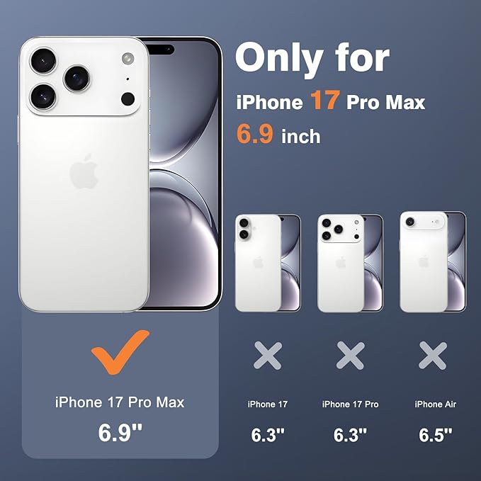 対応機種—iPhone 17 Pro Max (6.9インチ, 2025年発売) 専用設計。他の機種には対応していません。精密なカットアウトにより、カメラ・スピーカー・充電ポート・ボタン操作がスムーズで。