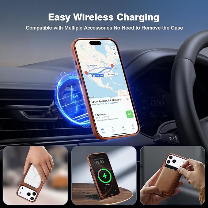 ワイヤレス充電に対応—本革ケース内部にマグネットリングを内蔵し、Mag-Safe充電器・車載ホルダー・カードウォレットなど全てのマグネットアクセサリーに完全対応。ケースを外さずそのままワイヤレス充電が可能で、とても便利です。