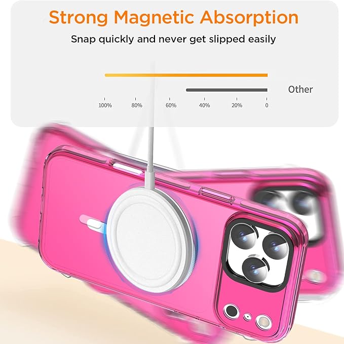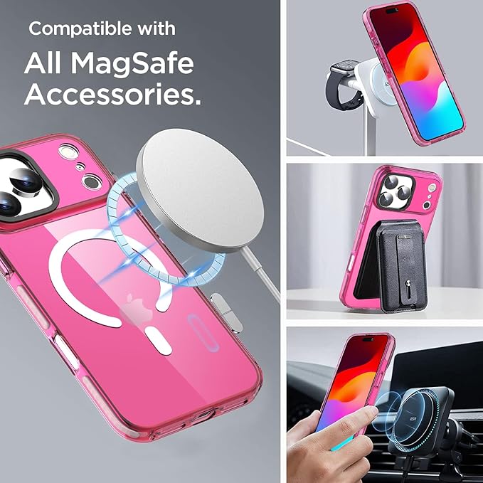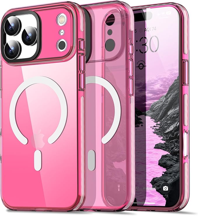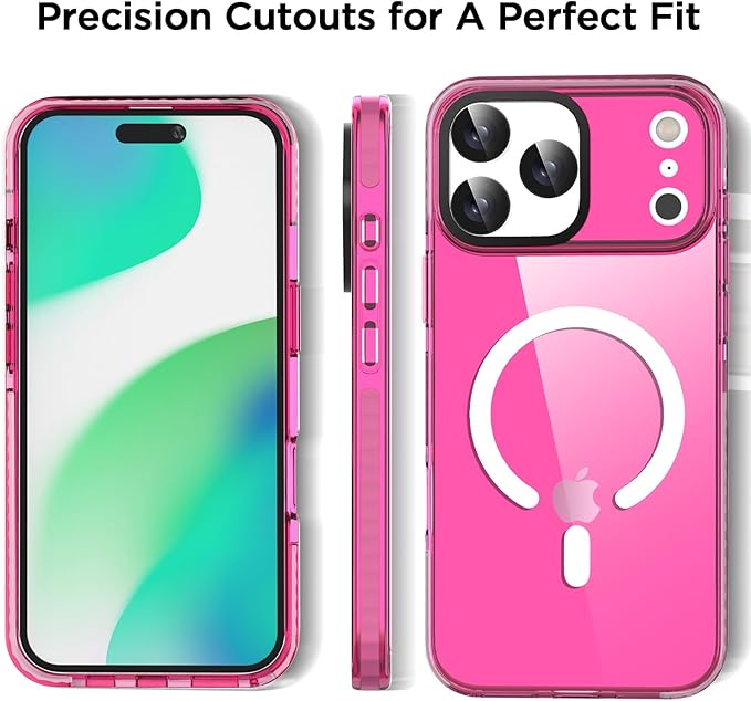 AICase ネオンホットピンク クリア iPhone 17 Pro Max 用 スマホケース Magsafe対応、トレンド感あふれる女性向け、ガーリーで洗練された美しくプレッピーなカラフルカラーとキュートなレトロで明るい保護ジェリーオーラカバー | KAZESHOP