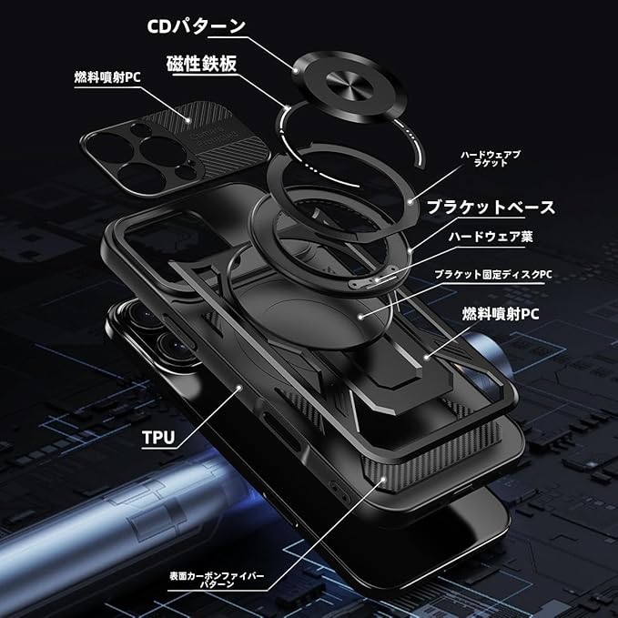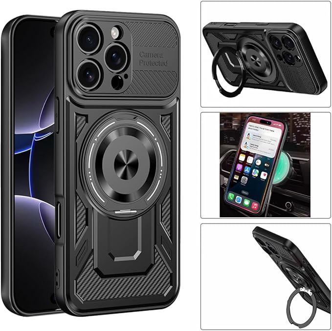 iPhone 17 Pro Max 用 ケース MagSafe対応 リング360 回転スタンド機能 縦横両対応 PC背面 + TPUバンパー 2重構造 黄ばみ防止 いphone17 Pro Max スマホケース ワイヤレス充電 レンズ保護 米軍規格 耐衝撃 携帯 アイフォン17 Pro Max カバー マグネット搭載 車載ホルダー マグセーフ対応 おしゃ | KAZESHOP