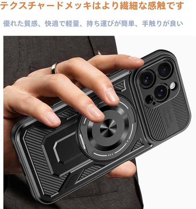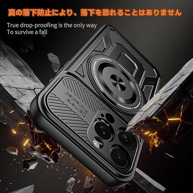 【対応機種】iPhone 17 Pro Max ケース 専用。ご確認お願い致します。 【ご注意・90日保証付き】:お客様の満足度は私たちの最も重要な任務であり、すべての尊いお客様は3ヶ月保証を享受しております。このケースを購入後に何か不具合が発生した場合【破損、初期不良など】や取り付けについてご不明な点がある場合は、いつでもお気軽にお問合せてください。12時間内迅速な返信をさせていただきます。お客様からのお問い合わせ内容に応じて無料交換、又は返金対応させていただきます。いずれの場合であっても、お客様の大切な時間とお金を節約するために、返品の必要ありません。弊社はいつも品質とサービスを最優先で、安心してご購入ください! 【耐衝撃】衝撃を受けやすい大事なカメラに、本体よりわずかにソフトなで高く設計しており、不意に落下してしまいました際の衝撃をある程度に吸収し、地面に置いた場合でもレンズが直接に触れず、傷つきにくくなっています。
