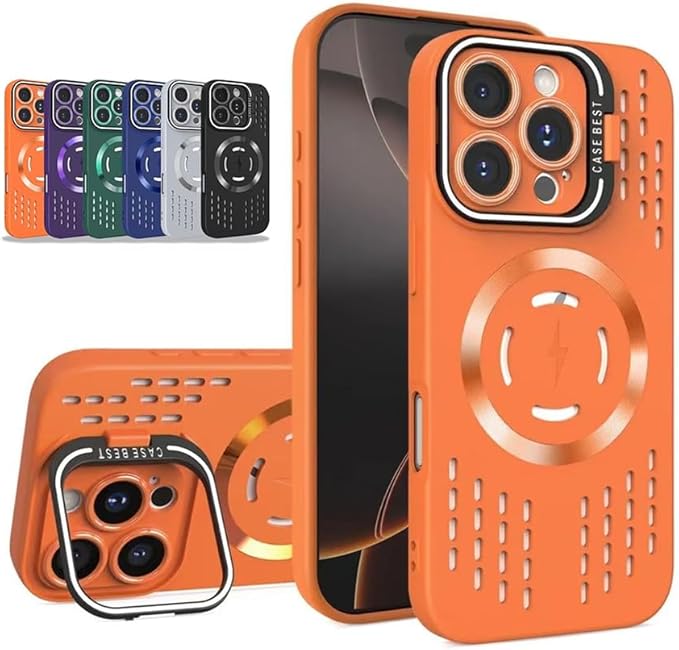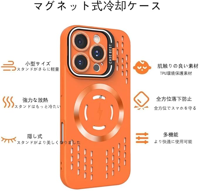 for iPhone 17 Pro Max 用ケース MagSafeアクセサリー対応 スマホケース マグセーフ カバー マ新型カメラスタンドカップルシリカゲルケース隠し携帯スタンドレンズフィルム保護 高放熱 [耐衝撃] [柔軟TPU液体シリコン] [ソフトタッチ] [レンズの全面保護] [指紋防止] [落下防止] [滑り防止]-17PM オレンジ | KAZESHOP
