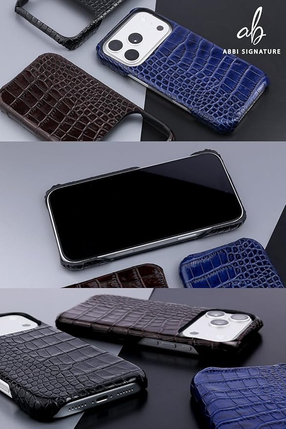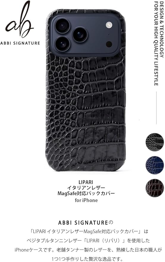 ABBI SIGNATURE iPhone 17 Pro Max 用 ケース 日本製 イタリアン本革 LIPARI バックカバー [ MagSafe対応 クロコ型押し ベジタブルタンニンレザー 革職人ハンドメイド スリム デザイン 無線充電対応 ] ABS27775i17PM ブラック 【正規品】 | KAZESHOP