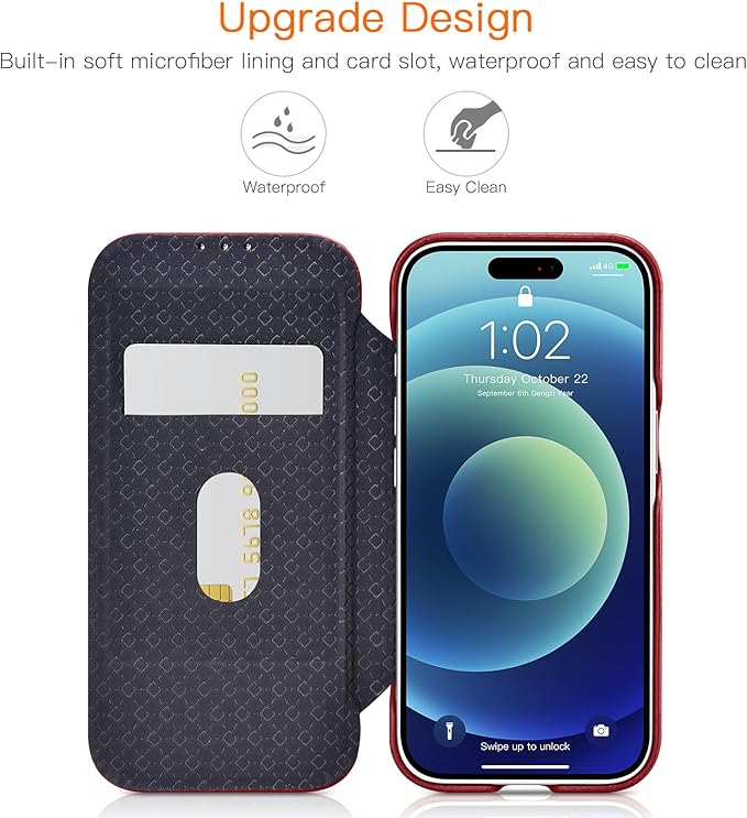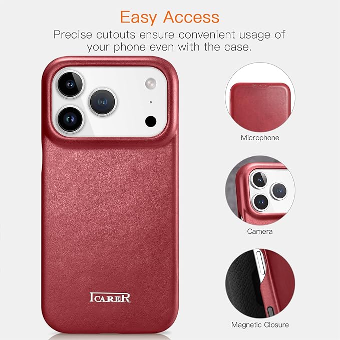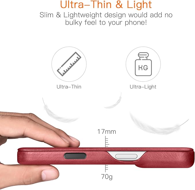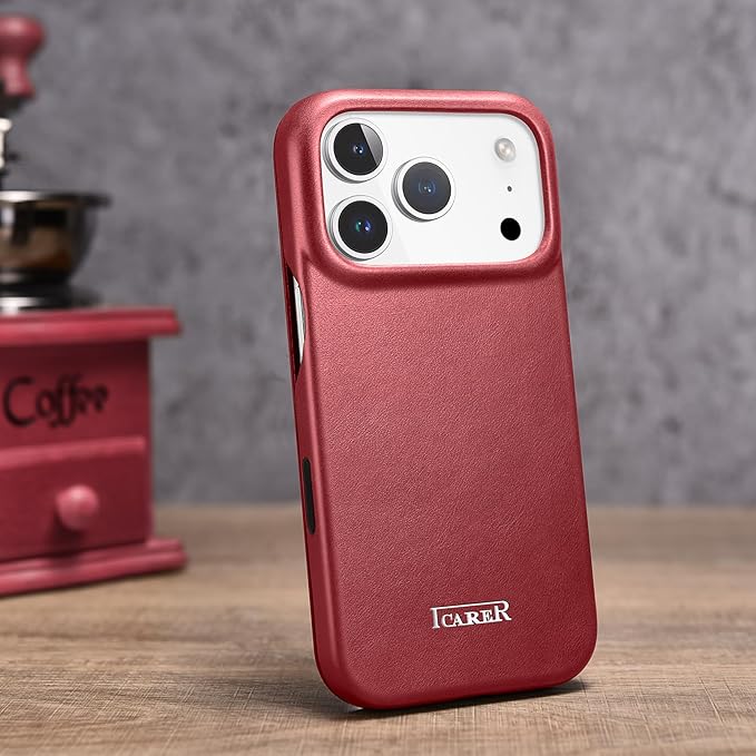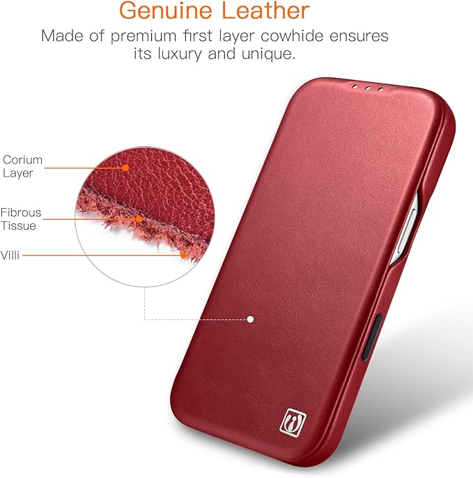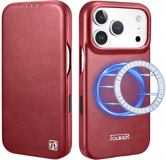 iPhone 17 Pro Max 用 ケース 手帳型 本革レザー スマホケース 高級 耐衝撃 薄型 軽量 カード収納 マグネット閉じ Mag-Safe対応 フルカバー保護 (レッド) | KAZESHOP