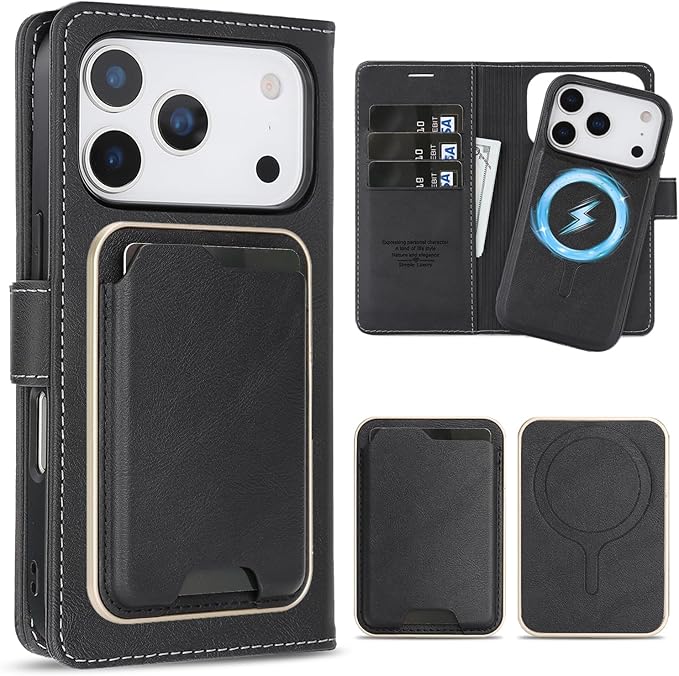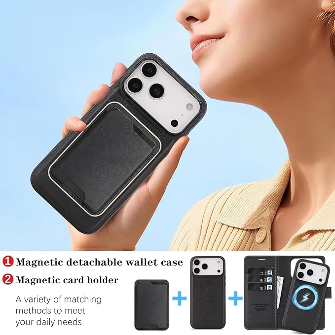ALANTOP iPhone 17 Pro Max 用ケース 手帳型 MagSafe対応 3in1 着脱式 RFIDブロッキング フリップスタンド付き 多財布 カードスロット 男女兼用 PUレザー 旅行・日常用