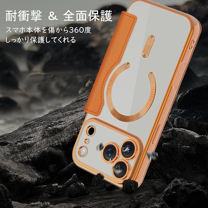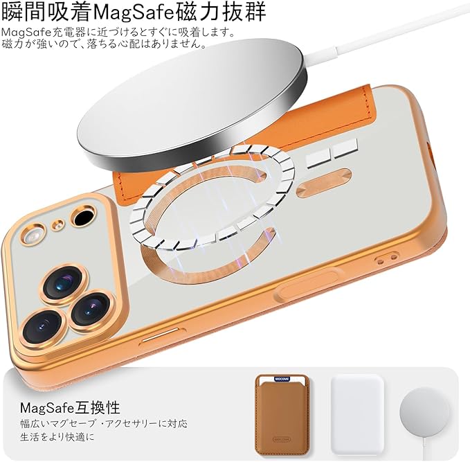 「MagSafe対応専用・強力な磁力吸着!」携帯をもっと便利に使いたいのですが、MagSafeに影響しないケースはありますか?これを試してみて! ケース内部は38個強力なマグネットを搭載、超吸着能力でいくら振っても落ちない。ワイヤレス充電だけでなく、Magsafe対応スタンド&リングも対応、リラックスした生活に重宝する。