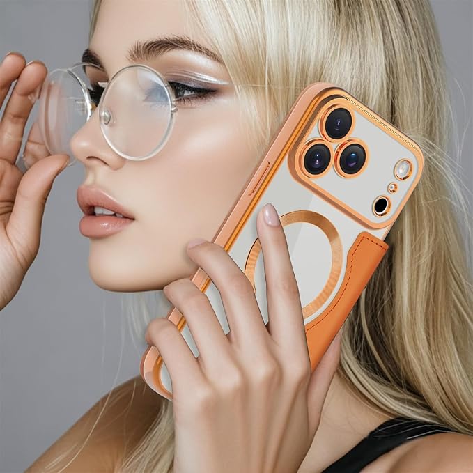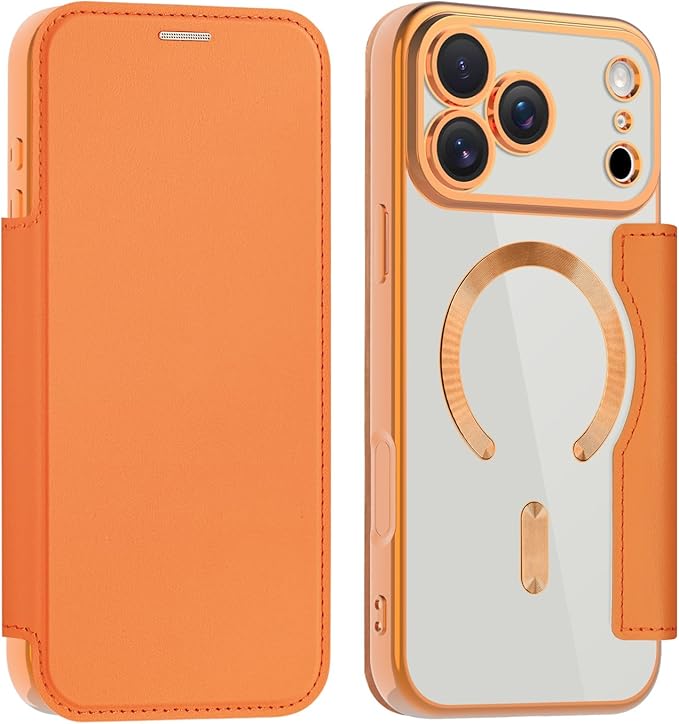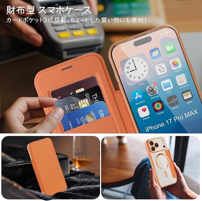 【REHOOF】iPhone 17 pro max ケース 手帳型 magsafe対応 背面 透明 クリア 財布型 アイフォン 17 プロマックス ケース マグセーフ 手帳 ワイヤレス充電対応 カード入れ PU革 レザー スマホケース 軽量 薄型 防塵 耐衝撃 全面保護 スマホカバー(オレンジ) | KAZESHOP