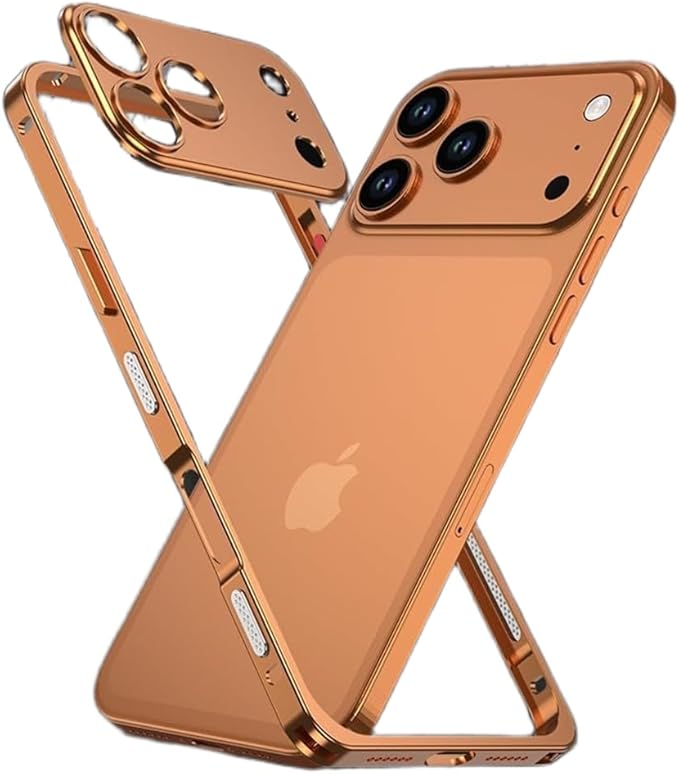 iPhone 17 Pro Max ケース 2in1 アルミ バンパー + カメラ保護カバー付き MagSafe 対応 ワイヤレス充電 いphone17 promax ケース 軽量 薄型 超強放熱 衝撃保護 男女兼用 オレンジ | KAZESHOP