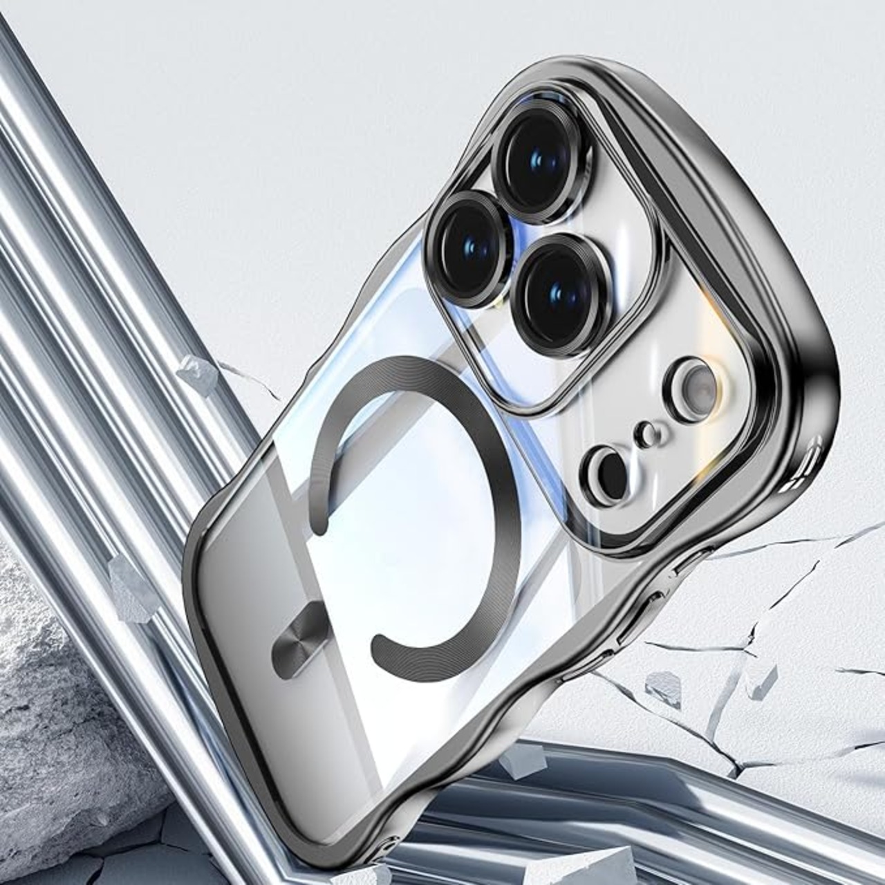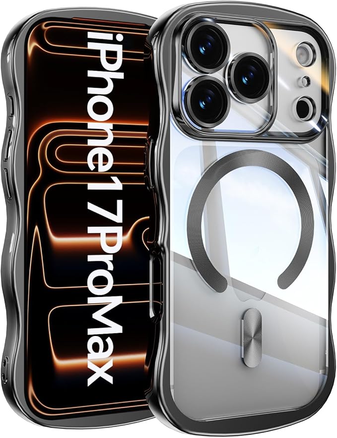 【 F FUTURE】iphone17promax用波型 ウェーブデザイン MagSafe対応 薄型 可愛い ワイヤレス充電対応 TPU ソフト 滑り止め おしゃれ 軽量 耐衝撃 うねうね バンパー スマホケース ストラップホール付き 対応 カバー Iphone 17 promaxと交換性あり (ブラック, Iphone 17 pro max) | KAZESHOP