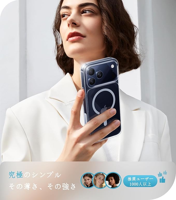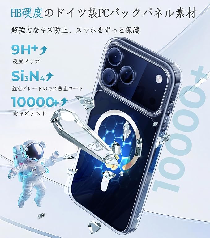 【99%超高透過で裸機の美を再現】iphone17pro max ケースは、高純度PC素材を採用。業界トップクラスの透明度を実現しました。装着時でも、装着していないかと見間違うほどのクリアさで、いphone17pro max ケースの洗練されたチタンカラーの上品な輝きまで、ありのままに忠実に再現。スマホの魅力を損なわず、長期間使っても輝きと透明感が持続。さらに、ワイヤレス充電もそのままお使いいただけ、便利な毎日をお届けします。