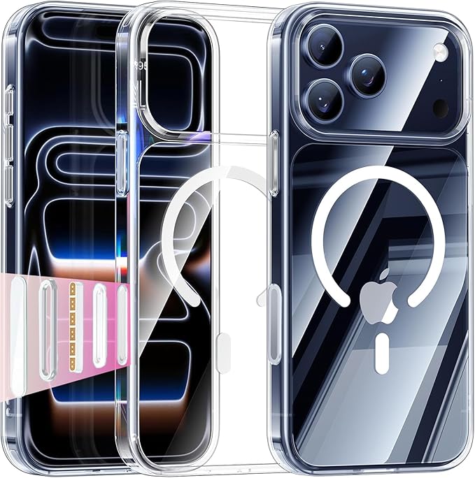 Maledan iphone 17 pro max ケース クリア MagSafe カメラコントロール対応 黄変防止 米軍MIL規格 超薄型 軽量 耐衝撃 指紋防止 傷防止 全面保護 マグネット搭載 滑り止め ストラップホール付き マグセーフ ワイヤレス充電対応 極々透明感 キラキラ PC背面 高耐久性 いphone17pro max ケース 透明 6.9インチ | KAZESHOP