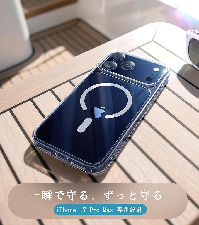 【iphone17 pro max ケース MagSafe 最適化設計&黄ばみ防止技術】高感度カメラボタンで、iphone 17 pro max ケース装着したまま撮影から精密なフォーカス制御まで可能。クリック/スライドの直感的操作がスナップ速度を向上。1500 ガウスの強力磁芯を内蔵。MagSafe 充電器 / カーマウント / マグネットウォレットなどのアクセサリーと確実に吸着し、15W 高速充電を完全サポートします。悪路や通勤時の振動でも脱落しにくく、安定性は業界トップクラスです。iphone 17pro maxケースはドイツ開発のPC素材を採用します。さらに、耐油・耐UVナノコートと「StainGuard」防汚コートを表面に施すことで、汗、皮脂、紫外線による黄ばみを強力に抑制します。その効果は一般的なあいふおん17 ケースの約4倍。日光曝晒や液体への耐性が実証されており、長期間にわたり美しい透明感を維持。指紋がつきにくく、あらゆるシーンでクリアな見た目と上品な印象を叶えます。