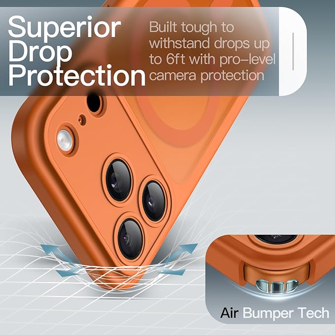 JETech iPhone 17 Pro 6.3インチ用 マグネットケース MagSafeに対応 耐衝撃薄型 スマホカバー 内蔵カメラコントロールボタン マット半透明バック (オレンジ) | KAZESHOP