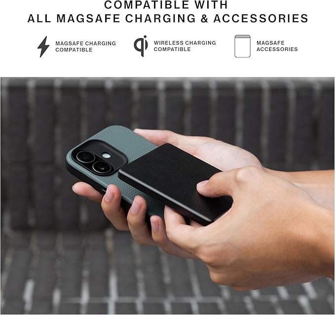MagSafe対応:内蔵マグネットにより、最大15Wの高速充電が可能。MagSafeチャージャー、ウォレット、全てのMagSafeアクセサリーとのシームレスな装着を実現。