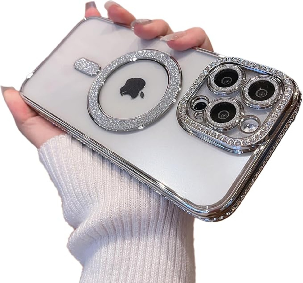 兼用 スマホケース iPhone 17 Pro Max ケース キラキラ クリア Magsafe対応 ラインストーン カメラレンズ保護 ラメ おしゃれ 可愛い ソフト シンプル マグネット搭載 ワイヤレス充電対応 耐衝撃 黄ばみなし 軽量 薄型 ストラップホール付き (シルバー) | KAZESHOP