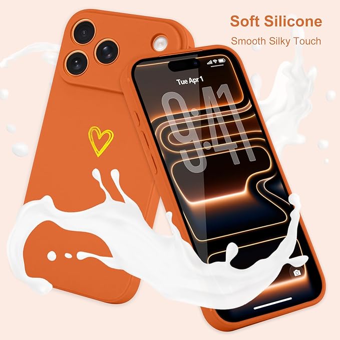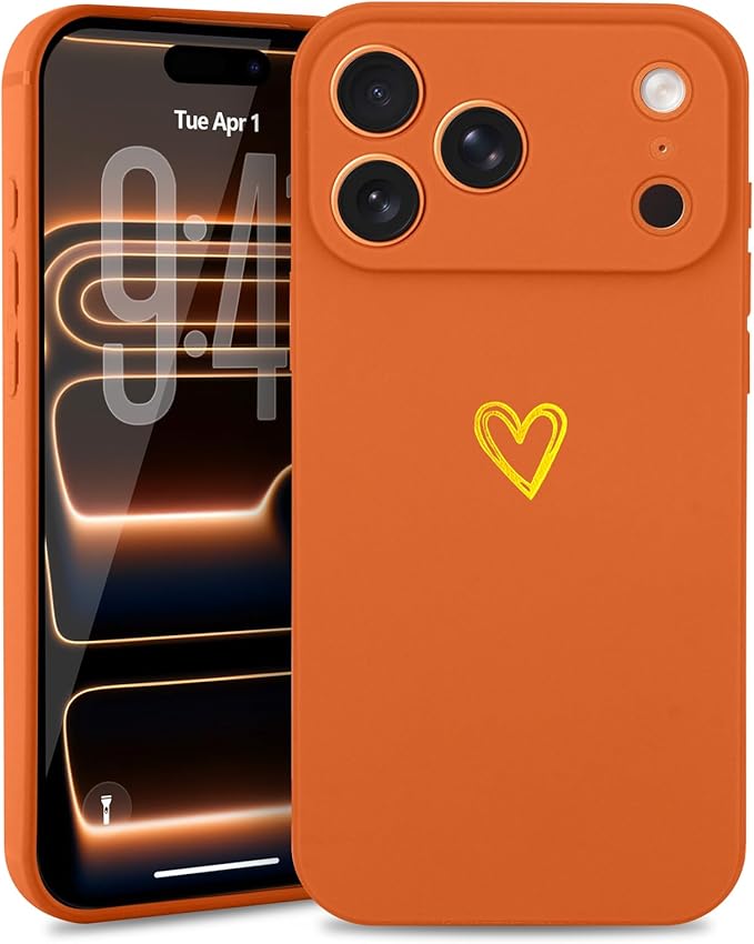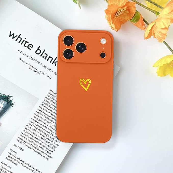 iPhone 17 Pro Max 用 ケース 可愛い ハート おしゃれ かわいい カメラ保護 シンプル スマホケース 女性 女の子用 軽量 耐衝撃 ストラップホール付き アイフォン17 Pro Max対応 スマホカバー(オレンジ) | KAZESHOP