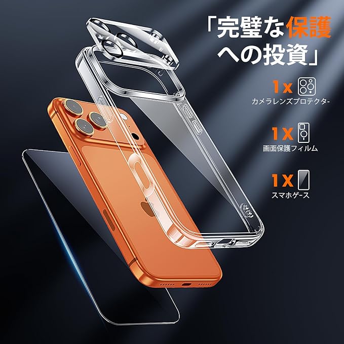 【3点セットのお得感】同価格帯では珍しい、iphone17 pro max ケース+9H強化ガラスフィルム+カメラ保護リングの3点セット。追加購入の必要がなく、コスパ抜群。