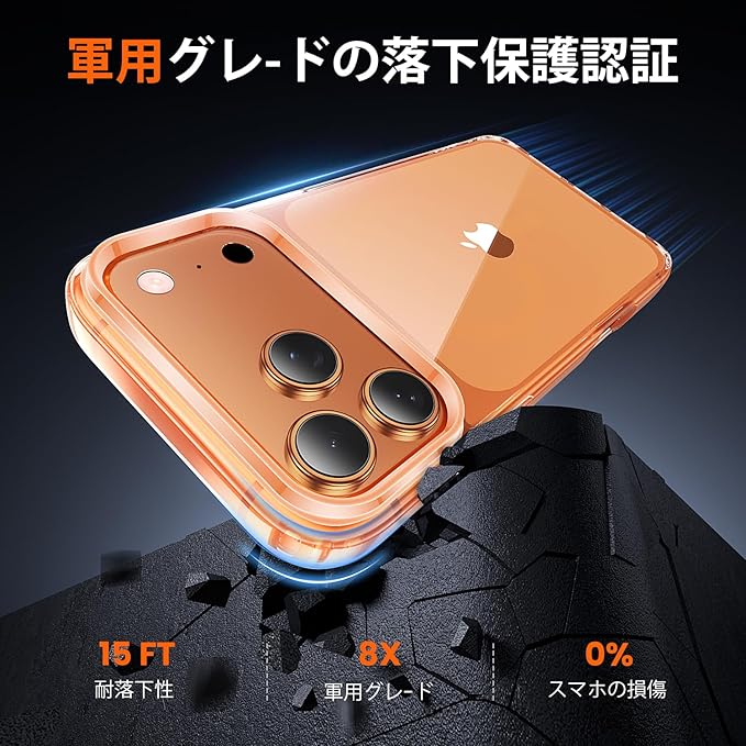 【10FT軍事規格の耐衝撃保護】MILグレード落下試験済みで、4層構造とアクリルバックによりすべての角にわたって衝撃を吸収し、iphone17 pro maxケースは24時間の包括的な保護を提供します。