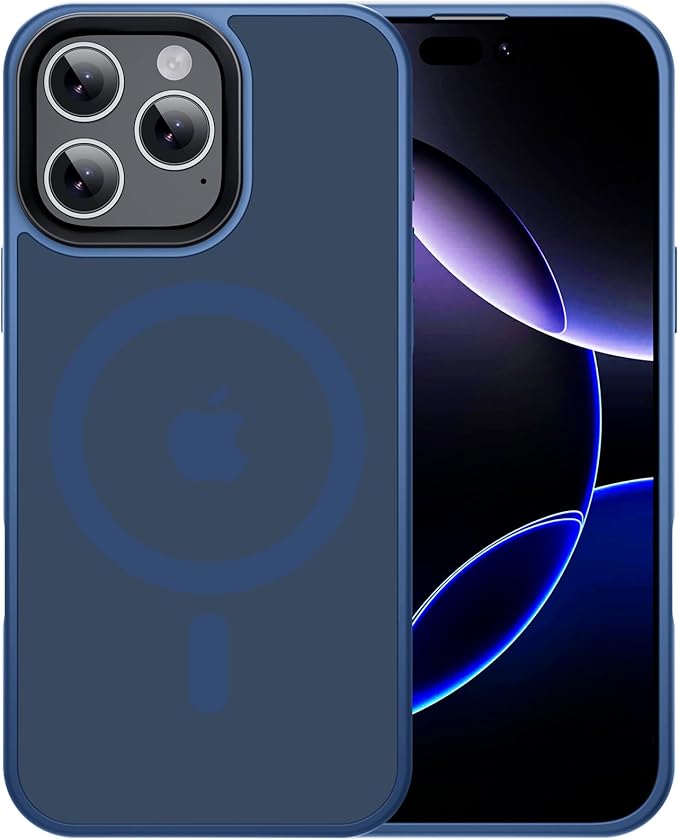iPhone 16 Pro Max 用 ケース MagSafe対応 【米軍規格・全面保護・耐衝撃】マグネット搭載、ワイアレス充電対応 半透明マット仕上げの背面、滑り止め ストラップホール付き スマホケース iphone 16 Pro Max 6.9インチ用 (ブルー) | KAZESHOP