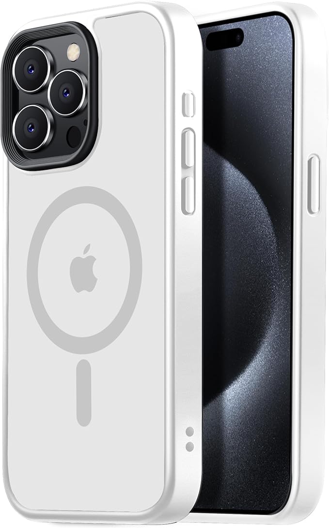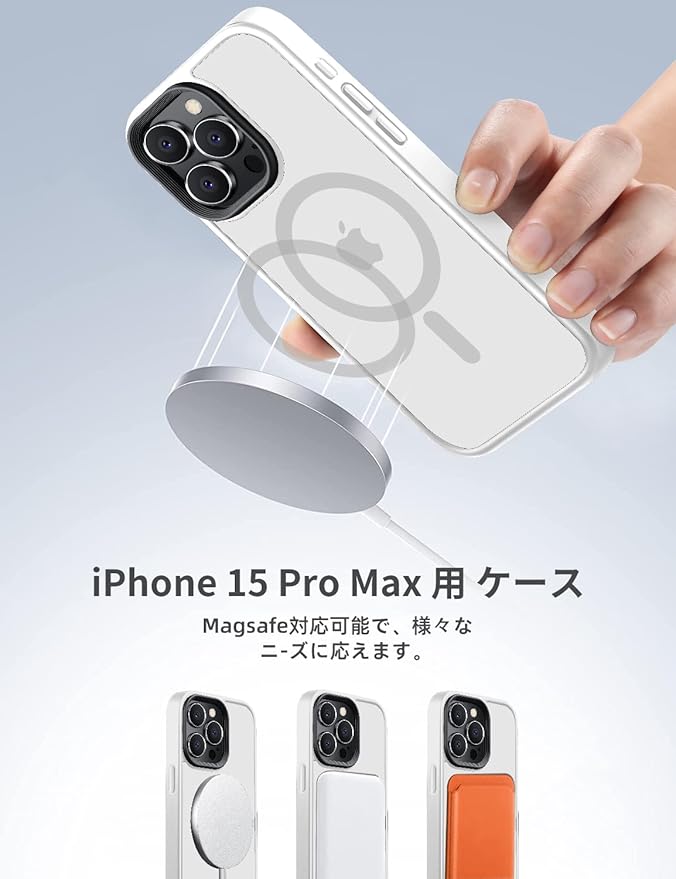 【米軍規格・MagSafe対応】Gtsoho iPhone 15 pro max 用 ケース 半透明 マグネット搭載 ワイヤレス充電 耐衝撃 耐久性 全面保護 黄ばみなし ストラップホール付き イフォン15 pro max用 カバー マグセーフ対応 白 | KAZESHOP