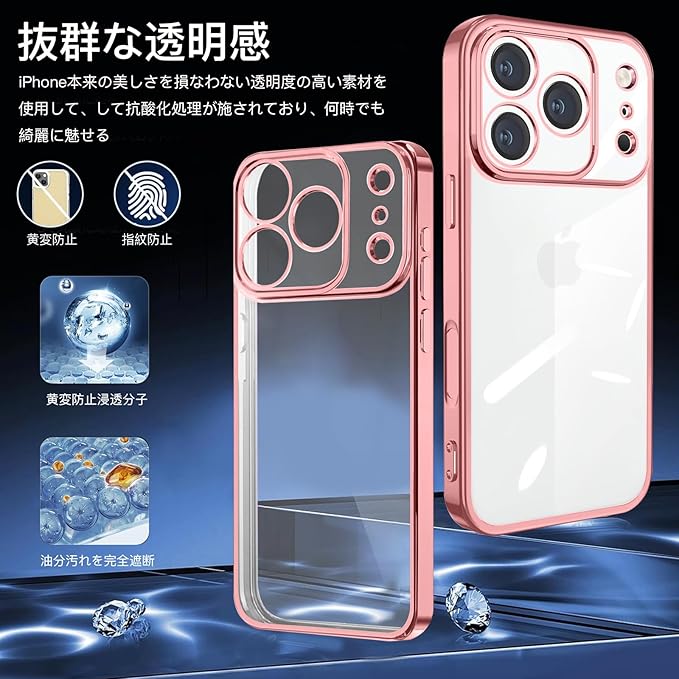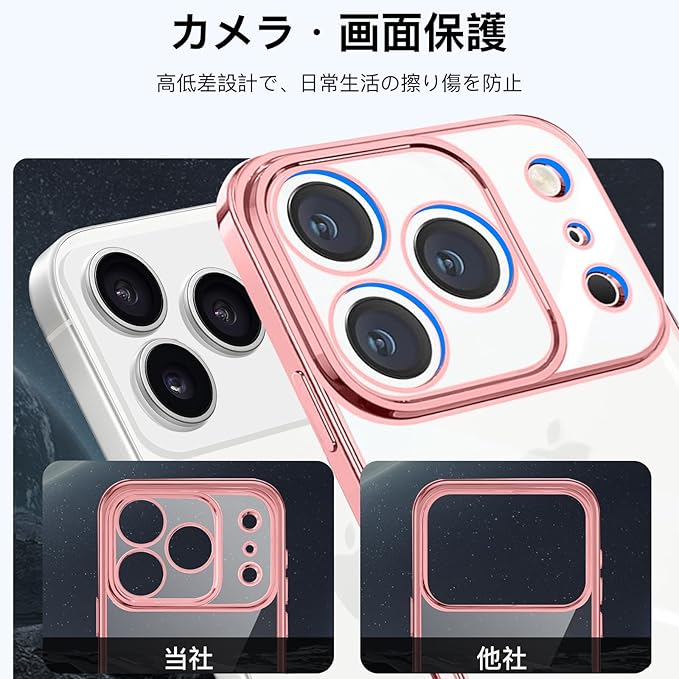 【高透明度&薄くて軽量】99%に持ち上げた透明感がiPhone17 Pro Maxの美しさをそのまま。フレームは多層メッキ加工技術によって設計、オシャレで独特の輝きを放ち、本来の崇高な美しさと高級感を損なわなく、いつものスマホに上品さをプラス。薄型で軽いデザインで、長く持っても手が疲れる感じもありません。まるでケースを付けていないかのような質感。