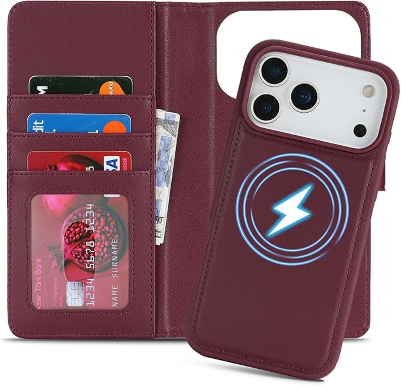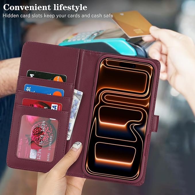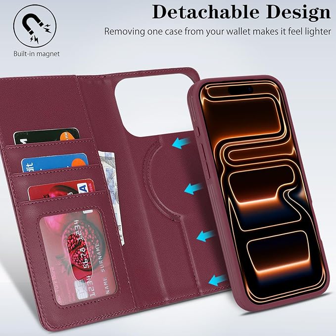 Pelanty for iPhone 17 Pro Max ケース手帳型 Magsafe対応ワイヤレス充電 for iPhone17 Pro Max 2in1分離式 携帯カバー PUレザー+TPU 財布型カバー マグネット 取り外し自由 両用2way 小銭入れ札入れ カード収納 スタンド機能 耐衝撃 滑り防止 全面保護 アイフォン17プロ Max スマホケース (ワインレッド) | KAZESHOP