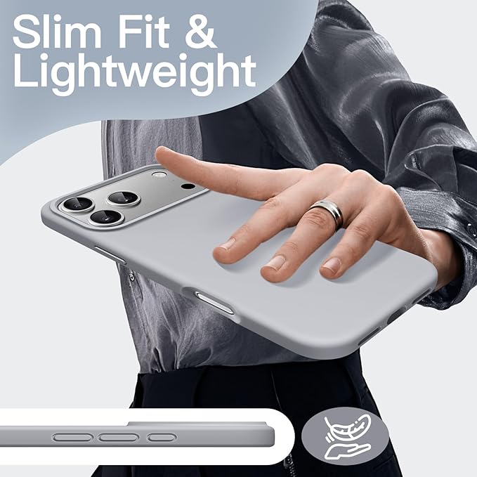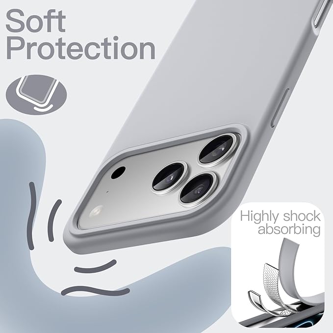 JETech iPhone 17 Pro Max 6.9インチ用 液体シリコンケース シルキーソフトタッチ 全面保護 マイクロファイバー裏地付き 傷防止 耐衝撃スマホカバー (グレー) | KAZESHOP
