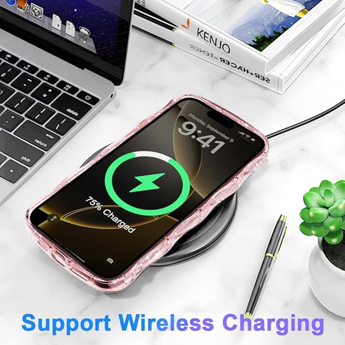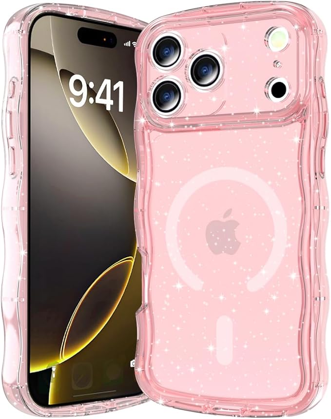 スマホケース 対応 iPhone 17 Pro Max ケース MagSafe対応 クリア 透明 キラキラ フラッシュ ウェーブエッジ 波形 おしゃれ かわいい 高級なTPU素材 TPU+PCパネル ハード 保護カバー 衝撃吸収 ストラップホール付き アイフォン17プロマックス 携帯電話カバー (ピンク, iPhone17 Pro Max) | KAZESHOP