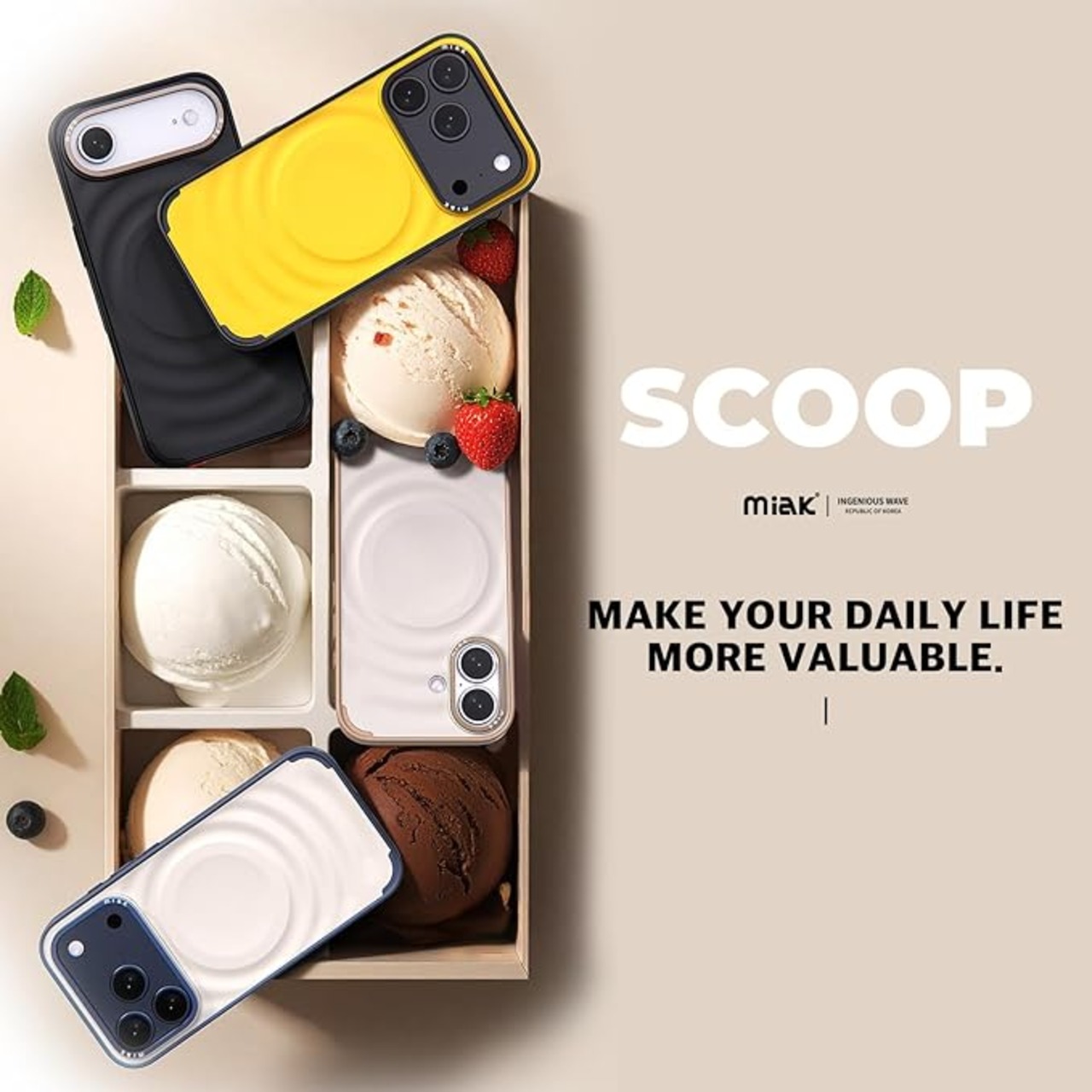 miak iPhone 17 用 MagSafe対応 ケース SCOOP [ アイスクリームモチーフの立体デザイン メタルカメラフレーム レンズ保護 四隅エアクッション 衝撃吸収 ハイブリッド構造 防塵設計 ストラップホール付き ] ソルテッドバニラ MA28024i17 【国内正規品】 | KAZESHOP