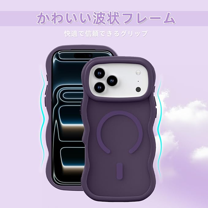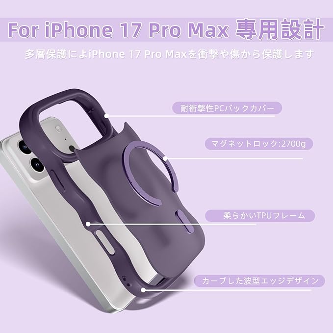 iPhone 17 Pro Max ケース MagSafe対応 耐衝撃 半透明 アイフォン17プロマックス ケース マグネット搭載 iPhone17 pro maxカバー 軽量 波形 薄型 マット感 指紋防止 滑り止め 軽薄型 PC背面TPUバンパー 黄変防止 米軍MIL規格 ストラップホール付き ワイアレス充電対応 アップル17 プロマックス用 (ダークパープル) | KAZESHOP