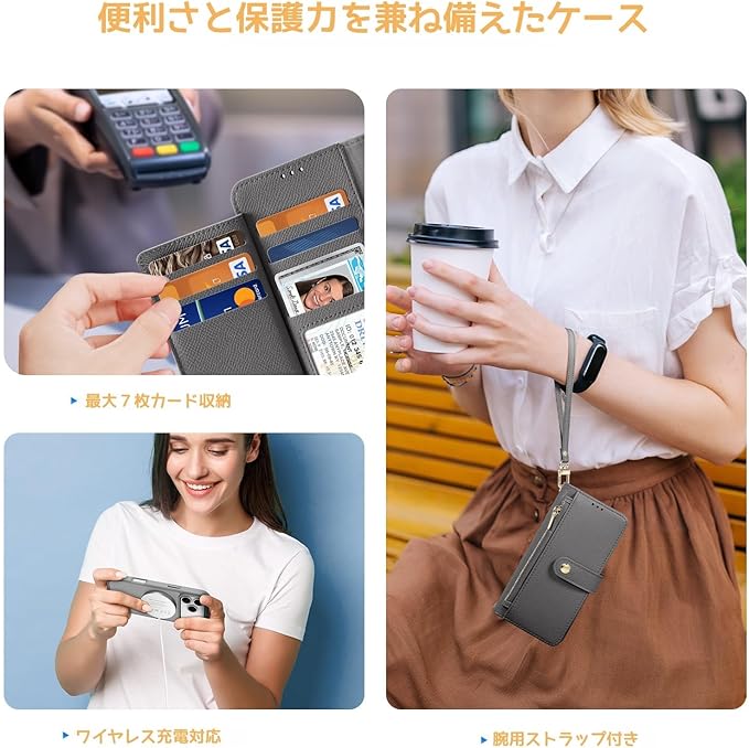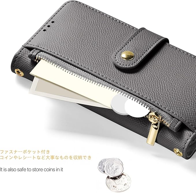 高級な本革手帳型ケースとカードポケット付き:洗練された本革スマホケースで、あなたのスマートフォンをスタイリッシュに守ります。内蔵されたカードポケットは、最大7枚まで収納可能。他には内ポケット*1枚、ファスナーポケットが*1枚備わっております。更に、正面蓋にボタン式のロック、ガタガタ簡易に開閉する心配はありません。
