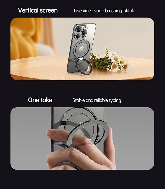 【内蔵式 調整可能メタルスタンド】カメラリング部分に、軽量で丈夫な航空アルミニウム合金製のスタンドが内蔵されています。このiPhone 15 Pro Maxケース のスタンドは0 から120 の間で自由に角度調整が可能。使用後は本体に平坦に収まり、邪魔になりません。