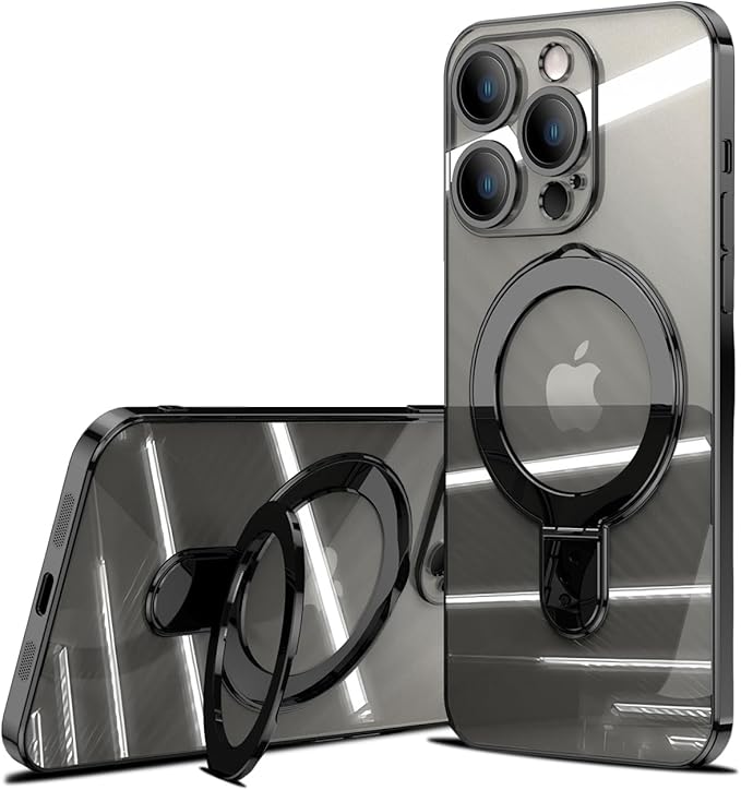 Gunroc iPhone 15 Pro Max 用 ケース MagSafe対応 マグネットスタンド付き 光沢 メッキメタリック ソフトクリア(ブラック)