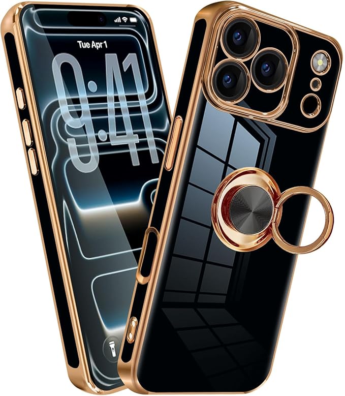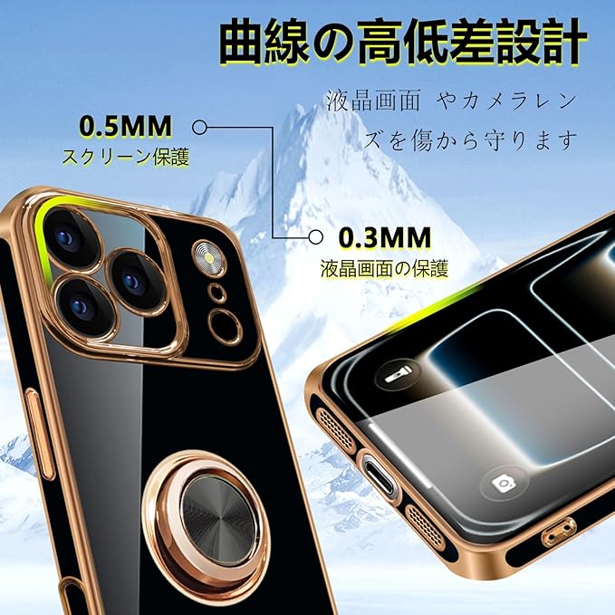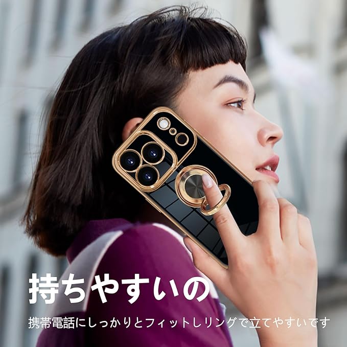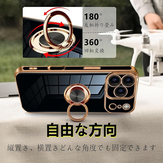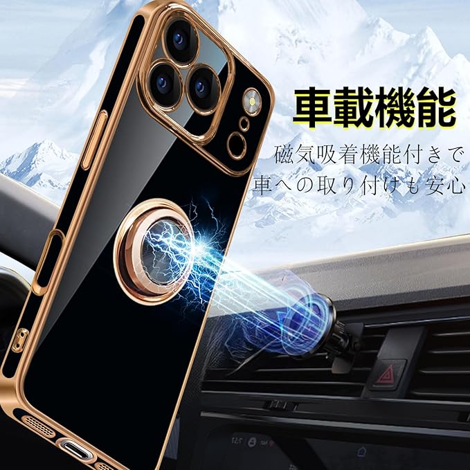 アイフォーン17 promax スマホケースリング付き いphone 17 pro max ケース リング 落下防止 iPhone用 360 回転 車載ホルダー ストラップホール付き TPU メッキ加工 保護カバー ブラック | KAZESHOP
