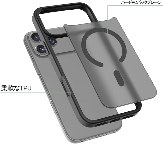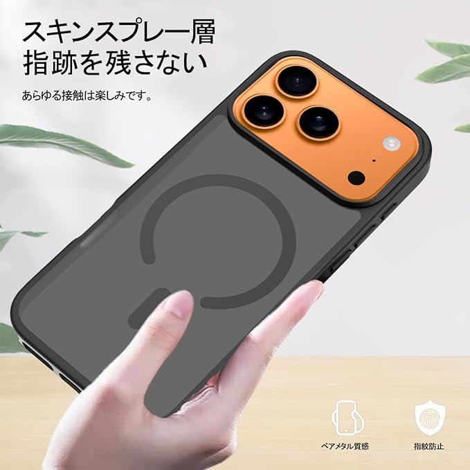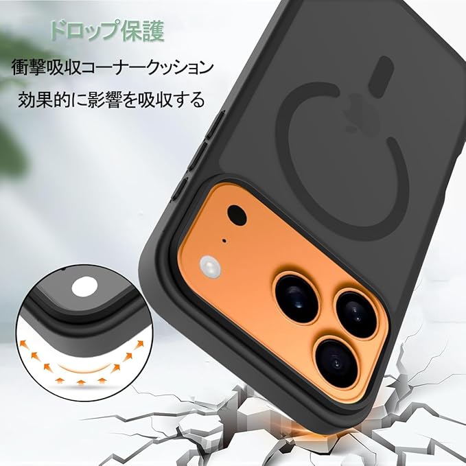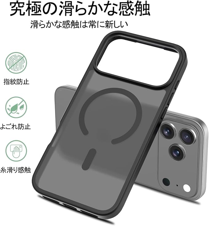 スマホケース 対応 iPhone 17 Pro Max 用の ケース 耐衝撃 滑り止め 指紋防止 米軍MIL規格 マット仕上げ Magsafe 対応 ワイヤレス充電 携帯ケース (ブラック) | KAZESHOP