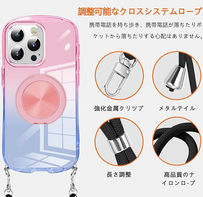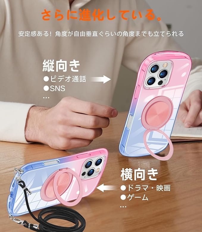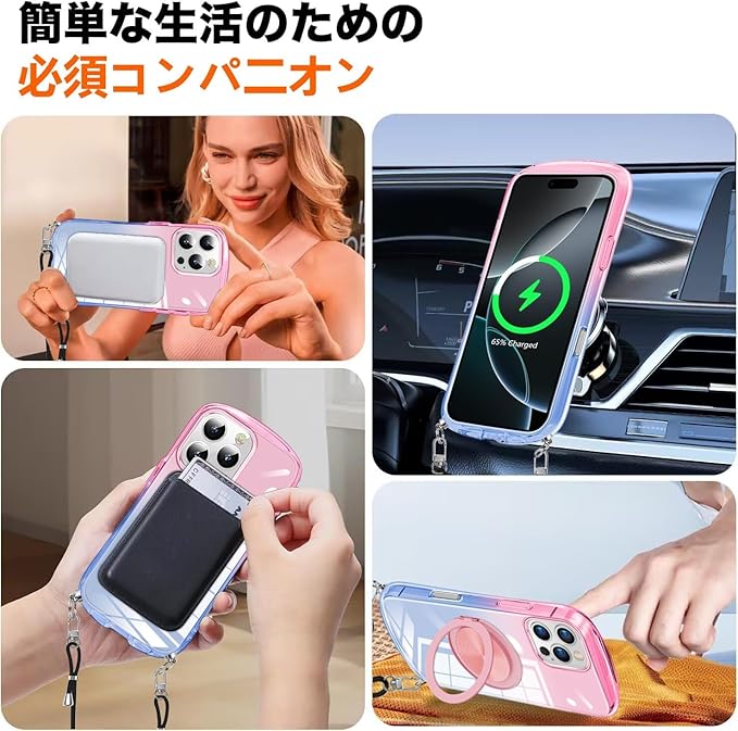 iPhone 17 Pro Max ケース クリア グラデーション色 リング付き MagSafe対応 リング アイフォン 17 promax 用 カバー 縄掛け 肩掛け 斜めかけ 透明 TPU 耐衝撃 360 スタンド機能 対応 ケース 韓国 可愛い | KAZESHOP