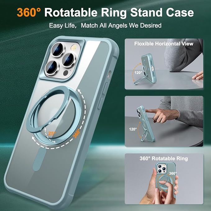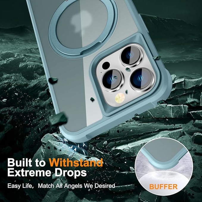 360 回転スタンド付き iPhone 13 Pro Max ケース MagSafe対応 縦横両対応 スリム 半透明 薄型 マグネット搭載 隠しスタンド アイフォン13 Pro Max用 スマホケース 磁気 耐衝撃 男女兼用 米軍MIL規格の保護 指紋防止 耐黄変, 薄ブルー | KAZESHOP