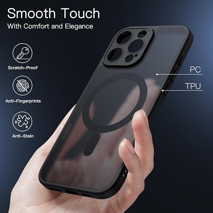 JETech iPhone 16 Pro Max 6.9インチ用 マグネットケース カメラコントロールボタン MagSafeに対応 半透明のマット背面 薄型 耐衝撃 フォンカバー