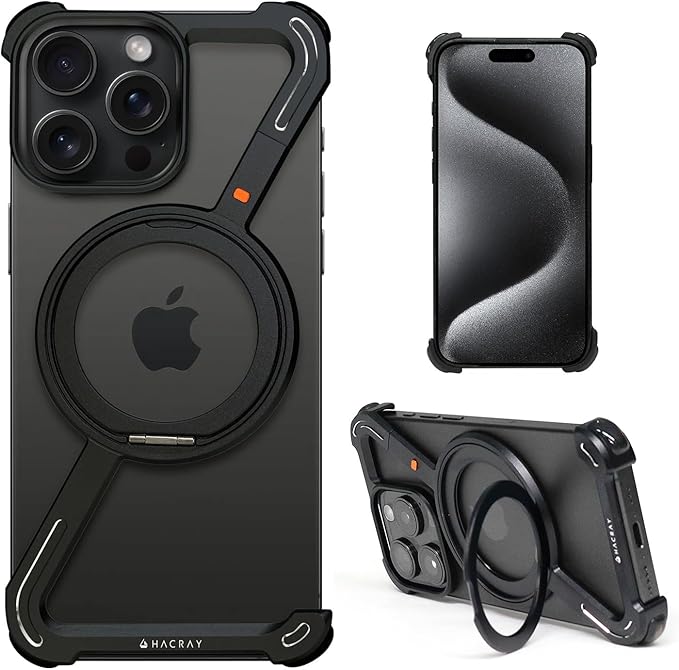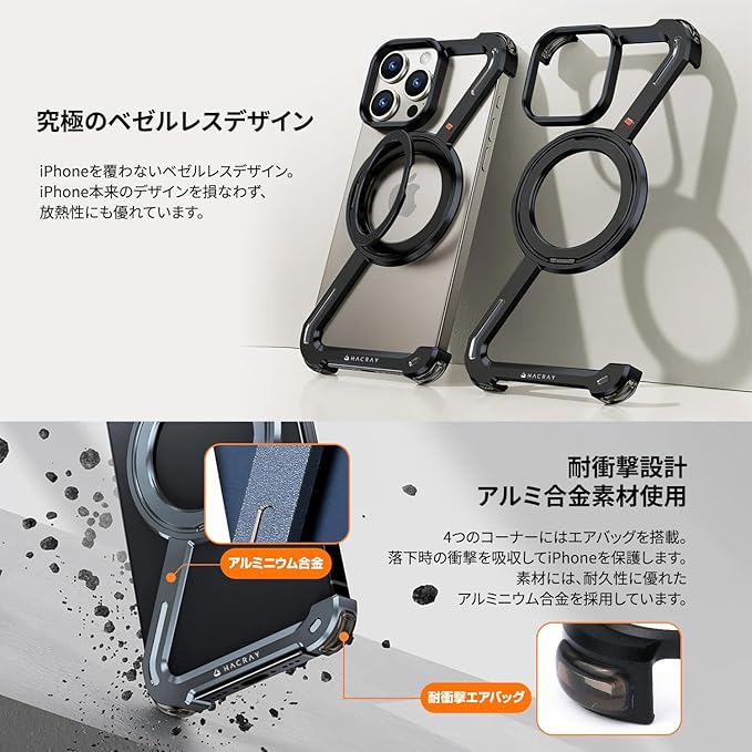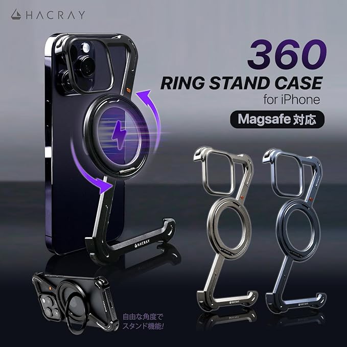 Hacray iPhone 14 Pro Max 用 バンパーケース 360 回転 Magsafeリングスタンド [ アルミニウム素材 衝撃防止 高耐久性 MagSafe対応 落下防止 スマホグリップ ] HR26880i14PM ブラック【国内正規品】 | KAZESHOP