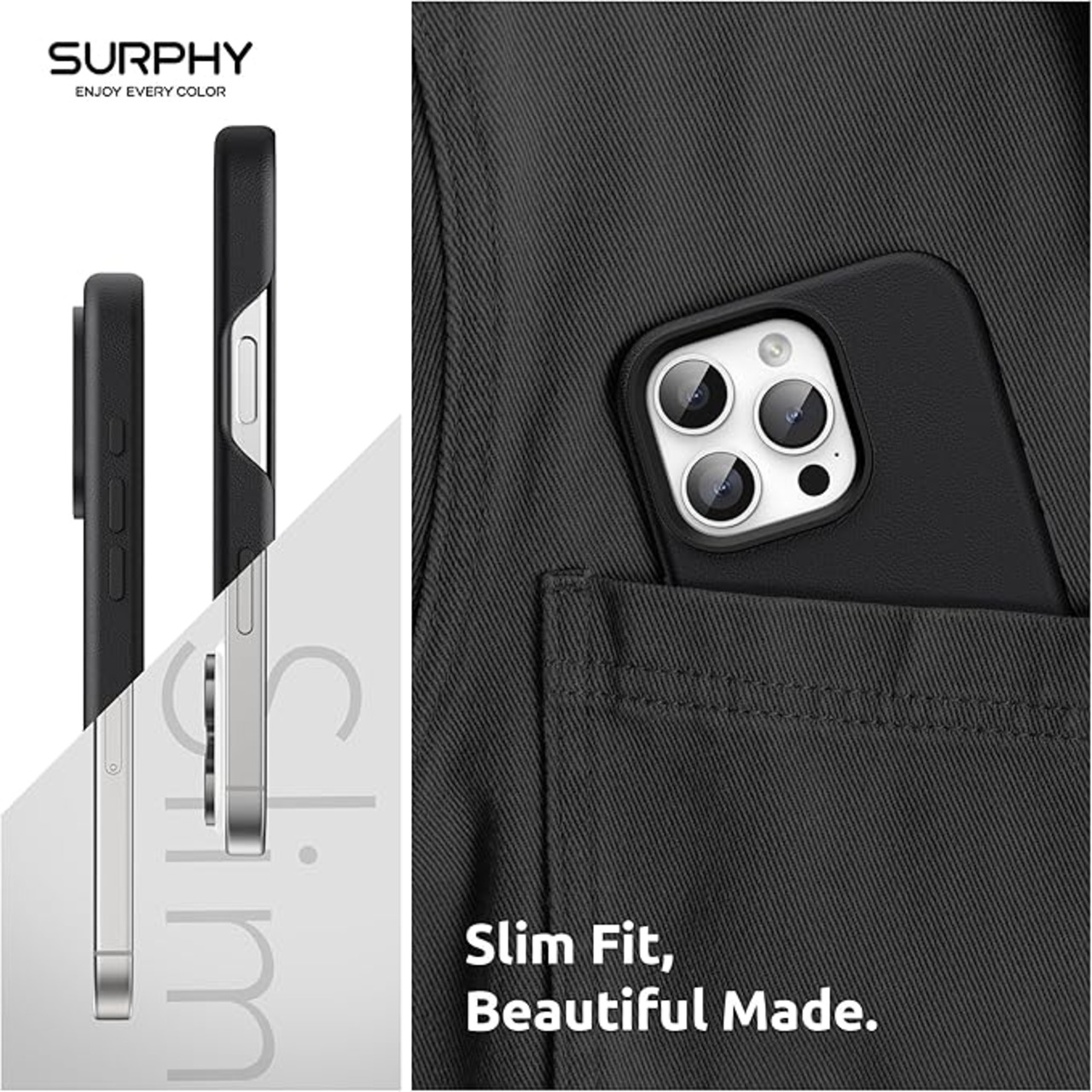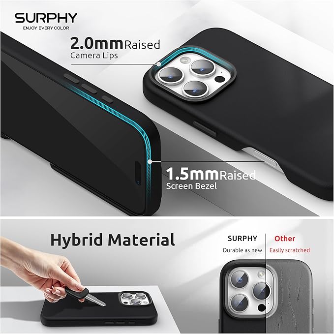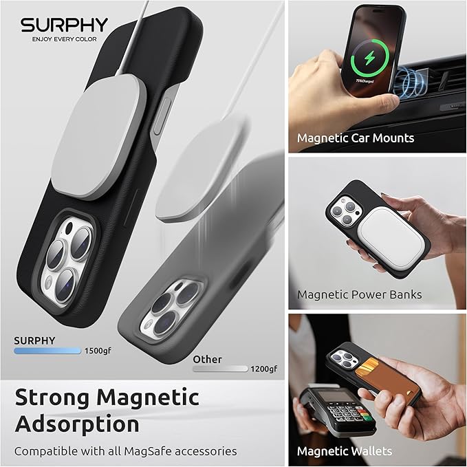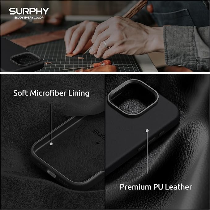 SURPHY iPhone 16 pro max用ケース レザー,MagSafe対応 6.9インチ対応(2024) 携帯ケース iphone16 pro max PUレザー マグネット搭載 内側はマイクロファイバーが付く(ブラック) | KAZESHOP