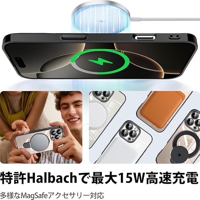 【MagSafe対応&磁力アップグレード】Magsafe内蔵-脱落しない背面に、MagSafeマグネットが付いており、MagSafeマグネット吸着でワイヤレス充電がより速く簡単になり。