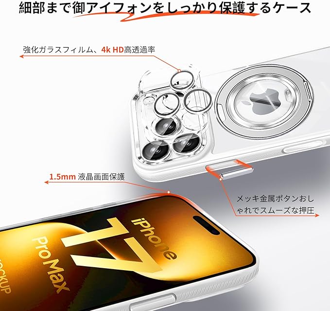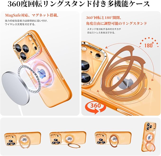 【新型多機能iPhoneケース】対応機種:For iPhone 17 ProMax ケース(6.9インチ対応)。360度回転スタンド・カメラコントロールカバー・取り付け取り外し可能なカメラカバー・クリアアクリル背板・カラーシリコン縁は耐衝撃・黄ばみなし&汚れ防止の多機能あいふぉんケースです、iPhoneを保護する同時にiPhoneをより綺麗になります。