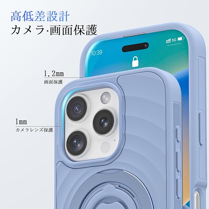 【360 回転スタンドとシリコンリングの融合】 360 回転スタンドとシリコンリングが一体化されたiPhone16 Pro Maxスマホケースは、非常に高いコストパフォーマンスを誇ります。スタンドは自由に角度を調整でき、どんなシーンでも最適な視聴体験を提供します。シリコンリングは柔らかく快適な手触りで、長時間の使用でも疲れを感じることはありません。さらに、手にしっかりとフィットすることで、持ち運び時の安定性も向上します。