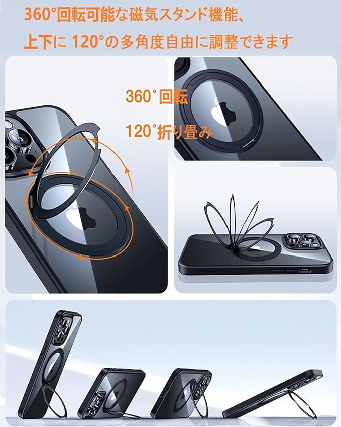 【2023年超世代・360 回転可能な磁気スタンド機能】超世代的な隠しスタンドと強力なマグネットリングの強力な結合により、高い吸着力でガッチリと固定しながら充電ができます。 上下に 120 の多角度自由に調整できます、360 回転可能なスタンドは革新的に設計されており、縦置きでも横置きでも安定して支えられ。